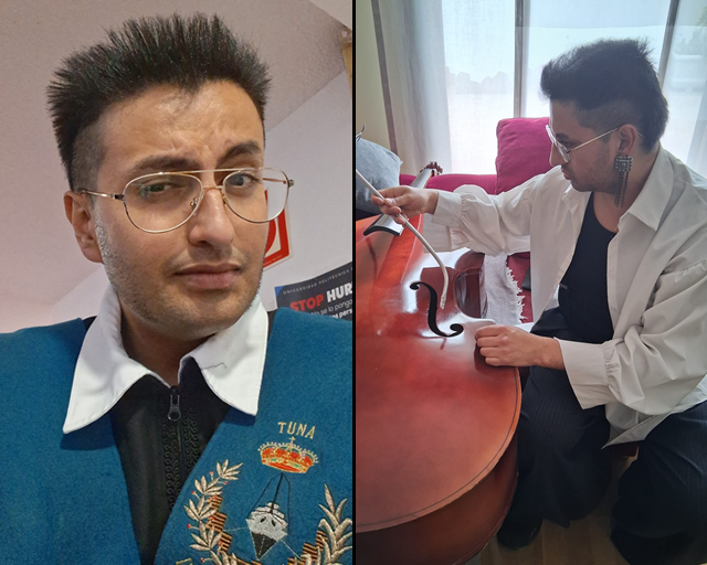 Fue en paralelo a esa evolución cuando comenzó su vínculo más directo con el entorno tunante, no desde la construcción, sino desde la reparación. Empezó a ajustar, mejorar y solucionar los problemas de los instrumentos de sus compañeros, entendiendo de primera mano las necesidades reales de quienes los utilizan en la Tuna.
