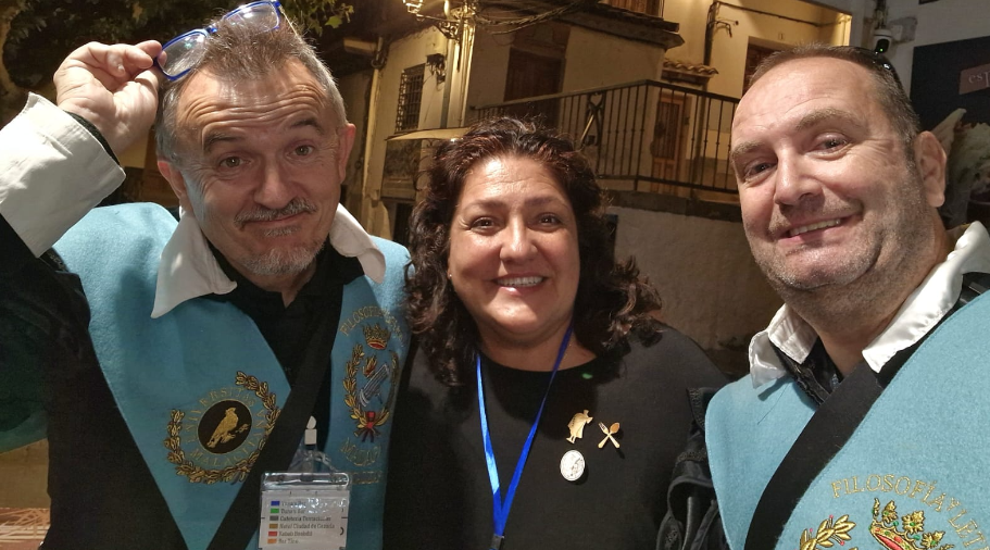 Entre las muchas anécdotas que guarda con cariño hay una que refleja bien su forma de integrarse en esta familia. En sus primeras visitas al FITUA solía llevar obsequios para la Tuna, pero un día se preguntó si no sería bonito ofrecer también algo personal a cada tuno. Así nació la idea de crear una pequeña rosita en forma de pin, símbolo que comenzó a regalar como muestra de afecto. Napoleón, inspirado por la idea, decidió crear también un pin con su característico sombrerito, convirtiendo ambos detalles en recuerdos muy apreciados entre amigos.